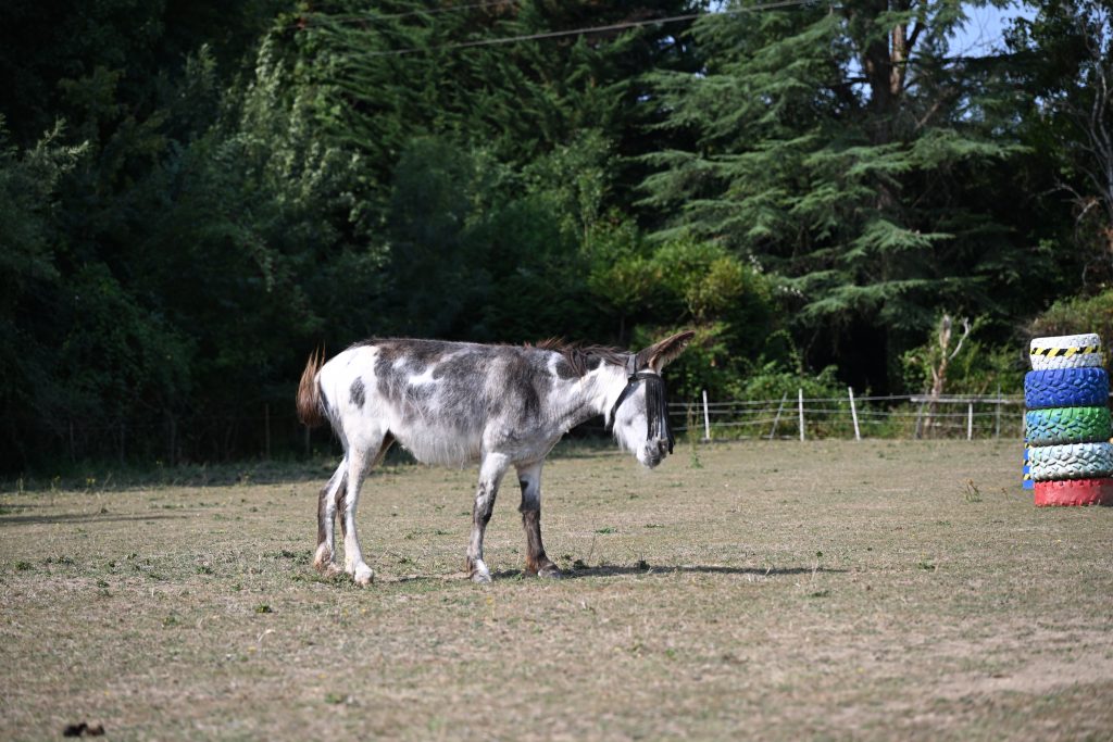 Je vous avais envoyé des nouvelles peu rassurantes sur la santé de Pony ces dernières semaines. Elle était très fragile notamment depuis le 1er septembre. A partir de ce moment-là, tout a été mis en œuvre pour faciliter son relevage chaque matin. Toute l’équipe de la Fontaine aux Anes s’est mobilisée pour préparer son espace et l’accompagner au mieux : palan, sangles, bâche, poteaux … et la relever dès 7h du matin. Un grand Merci à vous tous d’avoir été présents chaque jour à ses côtés ainsi qu’à Michel et Jojo, voisins du Bois d’Avault.