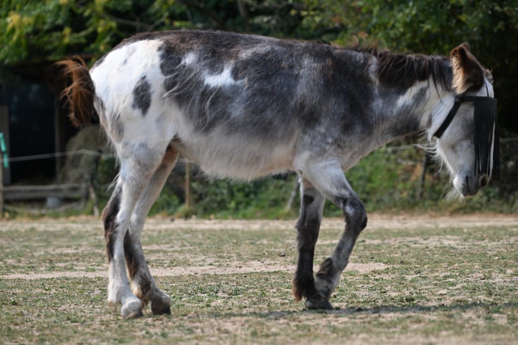 Pony est arrivée en mai 2024 et nous a quittés cet après-midi vers 15h. Les derniers jours et dernières nuits ont été particulièrement compliqués. Aujourd’hui, elle était très douloureuse à tourner en rond ne trouvant pas de position supportable. Le vétérinaire est passé vers 15h et n’a pas que constater que les membres postérieurs ne la supportaient plus (nécroses des phalanges et arthrose). Il a observé des inflammations au niveau des antérieurs en raison de leur compensation du reste du corps.